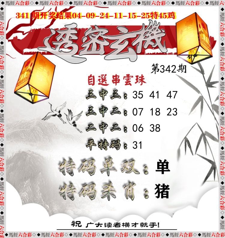 342期:♠单双中特♠料=== 【 双 】=== 开:??准